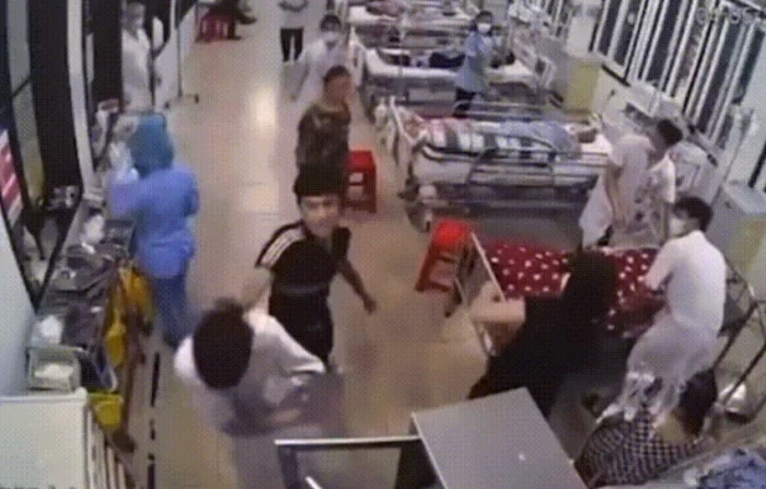 Nhân viên y tế bị người đàn ông áo đen đấm liên tục vào cùng mặt và đầu tại Bệnh viện Đa khoa tỉnh Nam Định