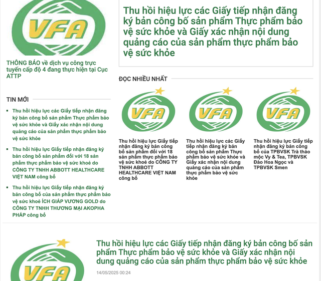 Trong nỗ lực siết chặt kiểm soát thị trường thực phẩm bảo vệ sức khỏe, thời gian qua Cục An toàn thực phẩm đã thu hồi hiệu lực đăng ký công bố của hơn 30 sản phẩm, phần lớn là do doanh nghiệp tự nguyện đề xuất ngừng lưu hành.
