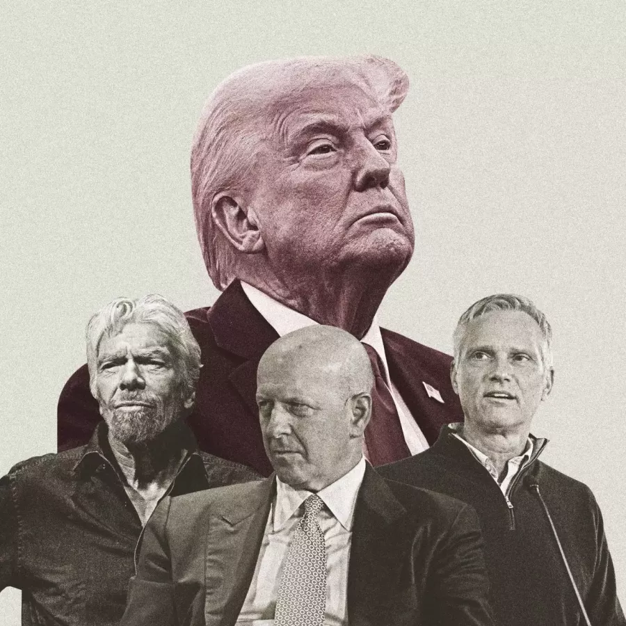 Các chính sách thương mại của Tổng thống Trump gây ảnh hưởng nặng nề đến các nhà lãnh đạo doanh nghiệp, bao gồm, từ trái sang phải: Richard Branson của Virgin Group, David Solomon của Goldman Sachs và Robert Isom của American Airlines