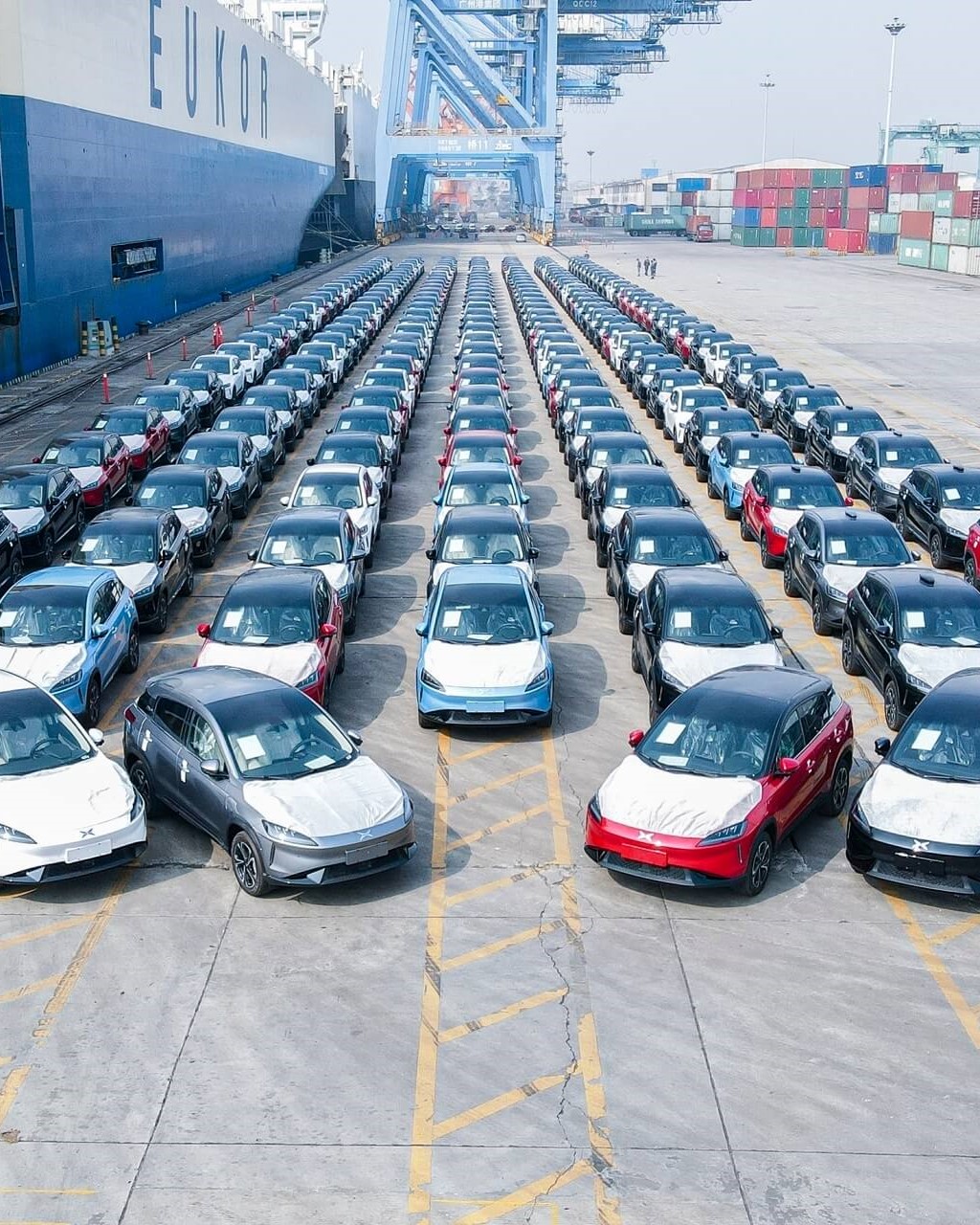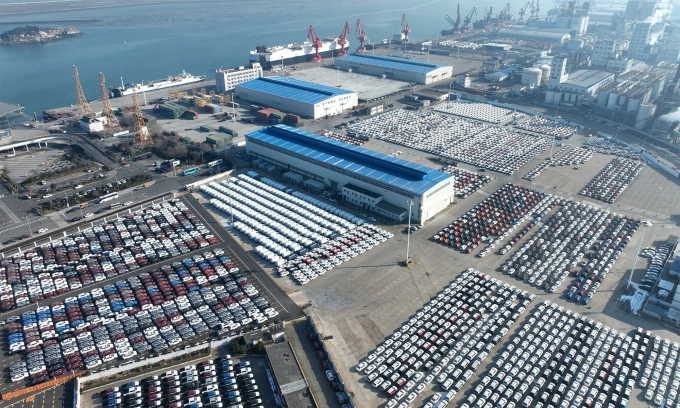 Ôtô Trung Quốc tập kết tại cảng chờ xuất khẩu. Ảnh: Autohome