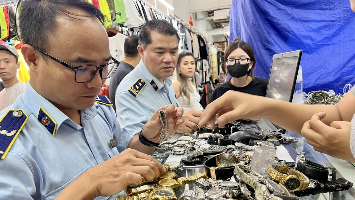 Hàng nghìn sản phẩm nghi giả mạo thương hiệu nổi tiếng như Rolex, Gucci, Louis Vuitton bị lực lượng chức năng thu giữ tại Saigon Square, TP HCM.