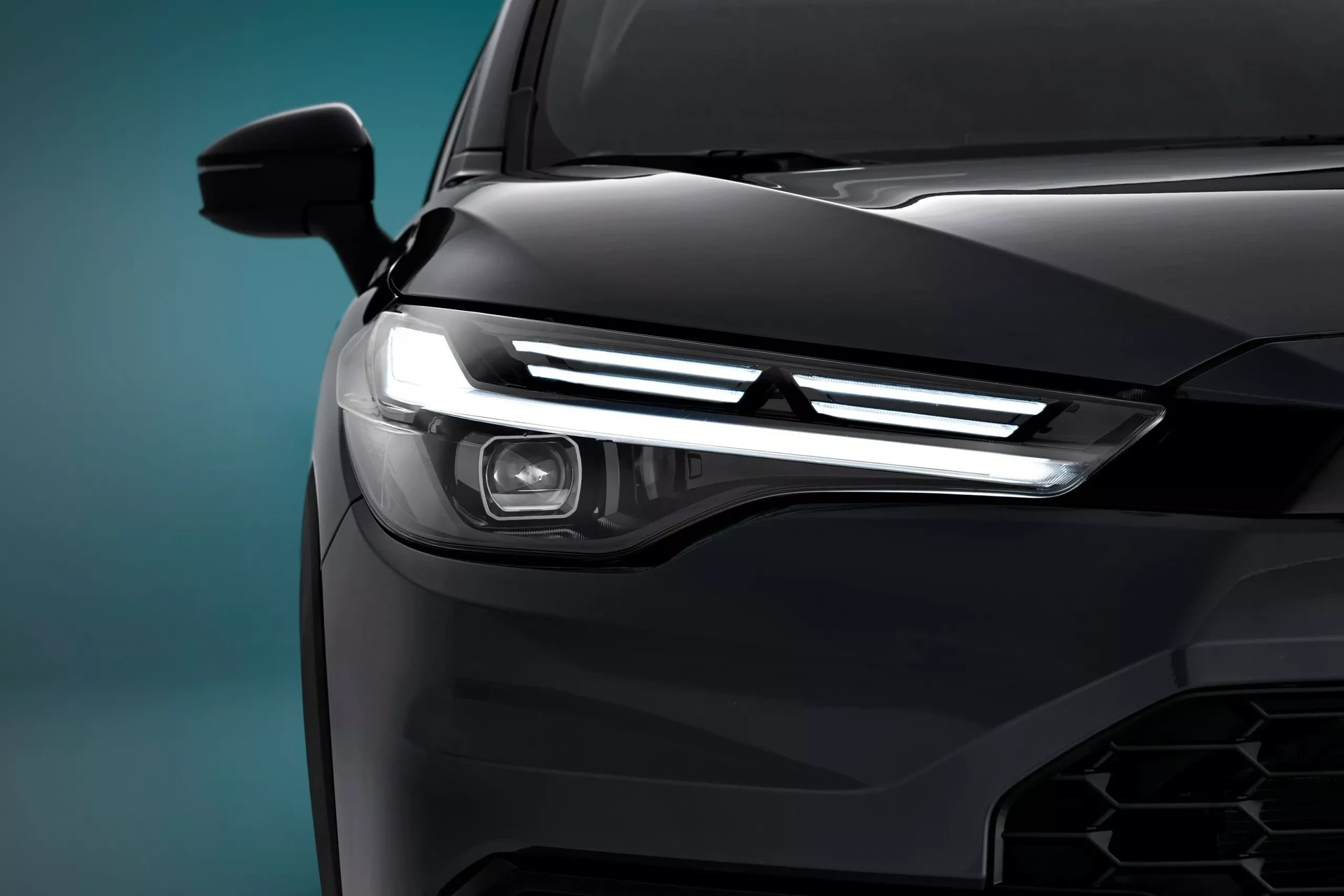 Ở thế hệ 2026, Toyota đã tinh chỉnh một số chi tiết trong thiết kế của Corolla Cross, nổi bật là phiên bản GR SPORT mang phong cách thể thao rõ rệt. Phần đầu xe được trang bị lưới tản nhiệt hình tổ ong sơn đen kích thước lớn, đi cùng hốc gió thể thao và biểu tượng GR đặt tại vị trí trung tâm. Cụm đèn pha LED cũng được tái thiết kế với đồ họa ánh sáng mới, tích hợp công nghệ pha thích ứng và thêm cánh gió nhỏ để cải thiện khí động học.