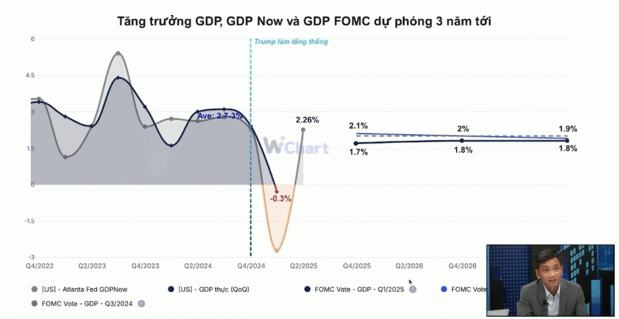 Ông Nguyễn Hoàng Linh, Giám đốc Nghiên cứu tại VCBF, phân tích thêm rằng, tăng trưởng GDP quý I/2025 của Mỹ âm 0,3% phần lớn do hiệu ứng thuế quan, trong khi thị trường lao động vẫn vững vàng với tỷ lệ thất nghiệp ở mức 4,2%. Điều này khiến Fed cần thêm thời gian để củng cố quan điểm cắt giảm lãi suất. Tức là, dù xu hướng nới lỏng đã rõ, nhưng quá trình thực hiện sẽ diễn ra từ từ, kéo dài tới năm 2027.