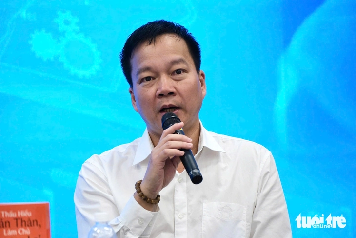 Ông Nguyễn Anh Dũng – phó vụ trưởng Vụ Giáo dục đại học – trao đổi với học sinh về chuẩn đầu vào ngành vi mạch bán dẫn – Ảnh: NGUYÊN BẢO